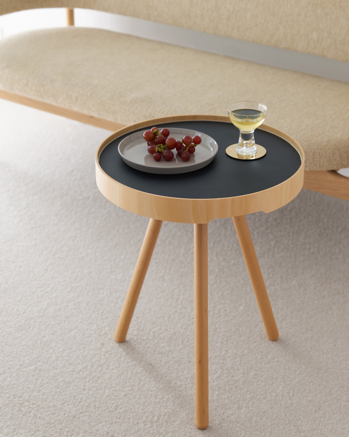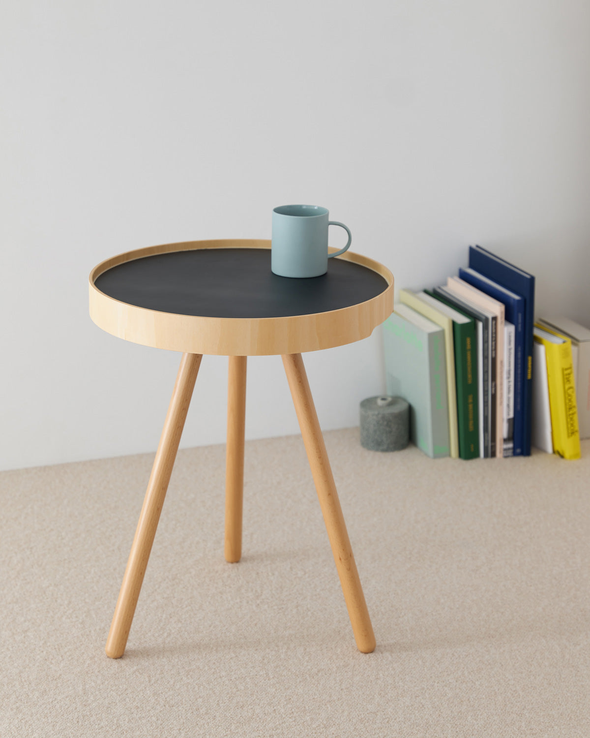主張しすぎない落ち着いたデザインが、どんな空間にも溶け込み、また、軽い本体は持ち運びも簡単。使う人の近くにいつも置いておきたいBY TRAY TABLE です。