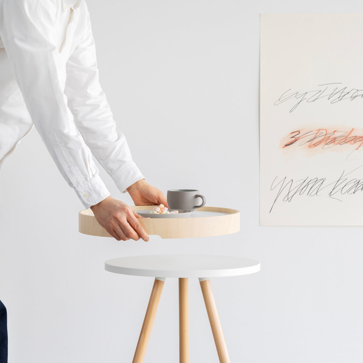 トレーをサイドテーブルとして使えるBY TRAY TABLE。リビングとキッチンを動き回っていた日常の煩わしさに初めて気がつきます。