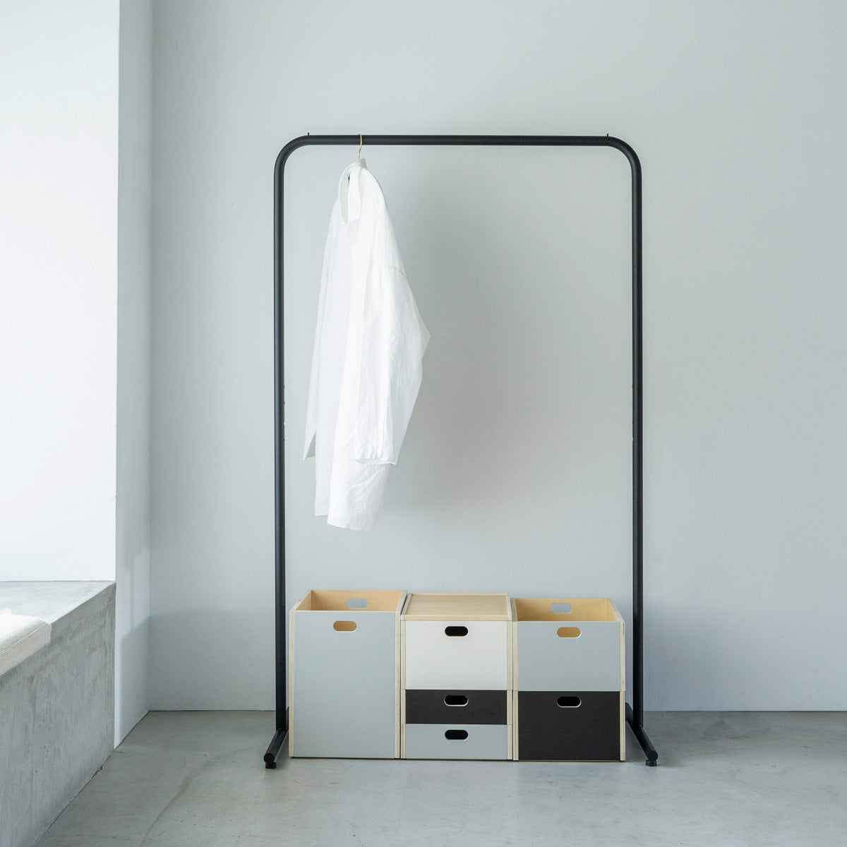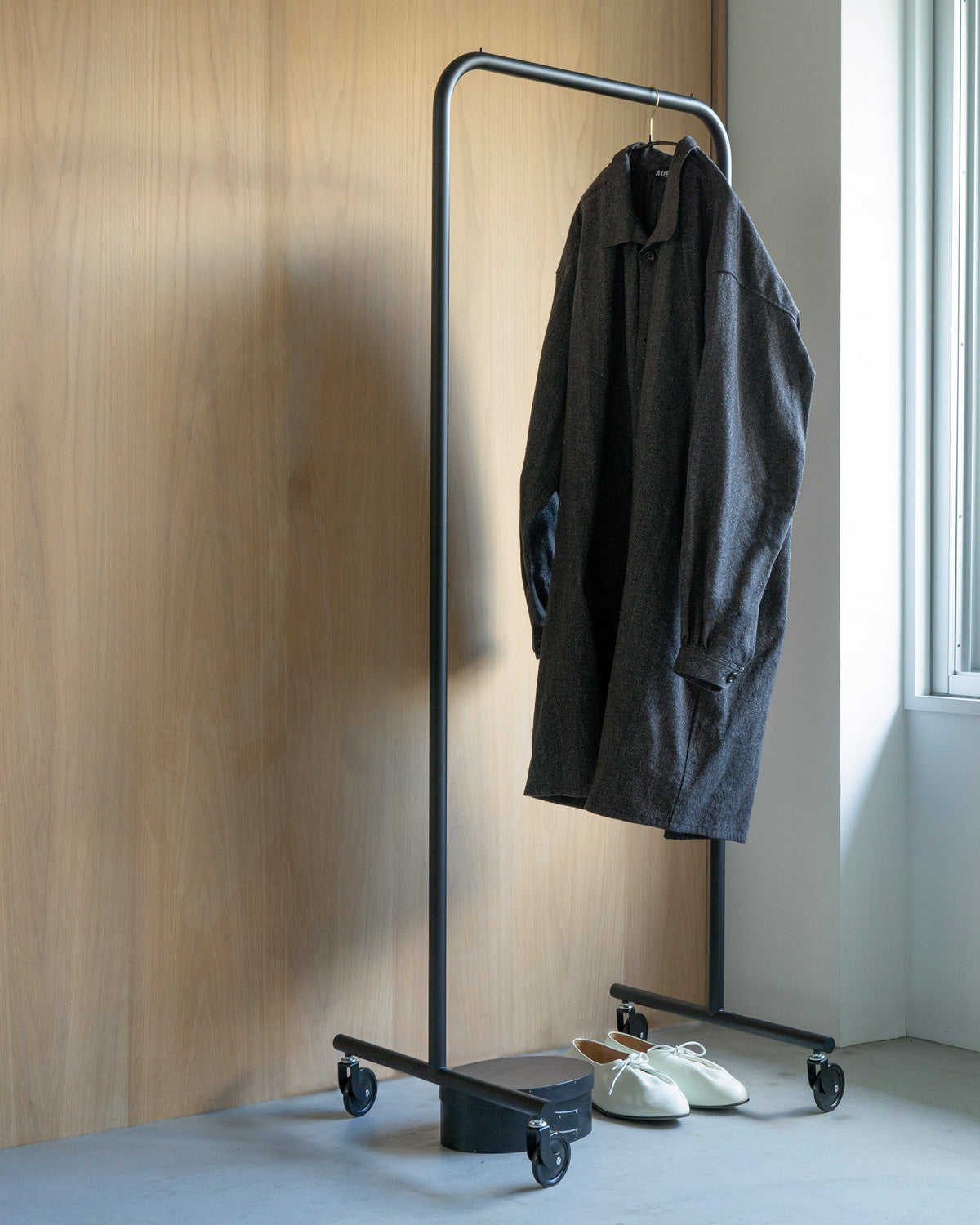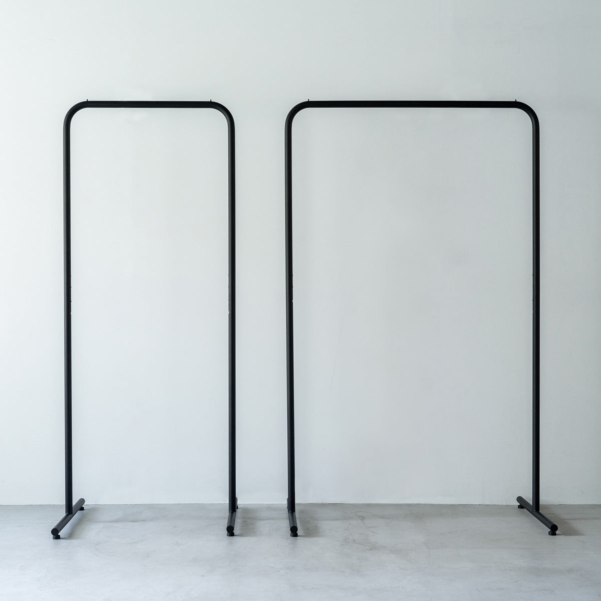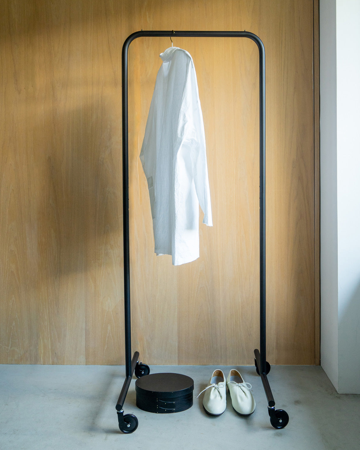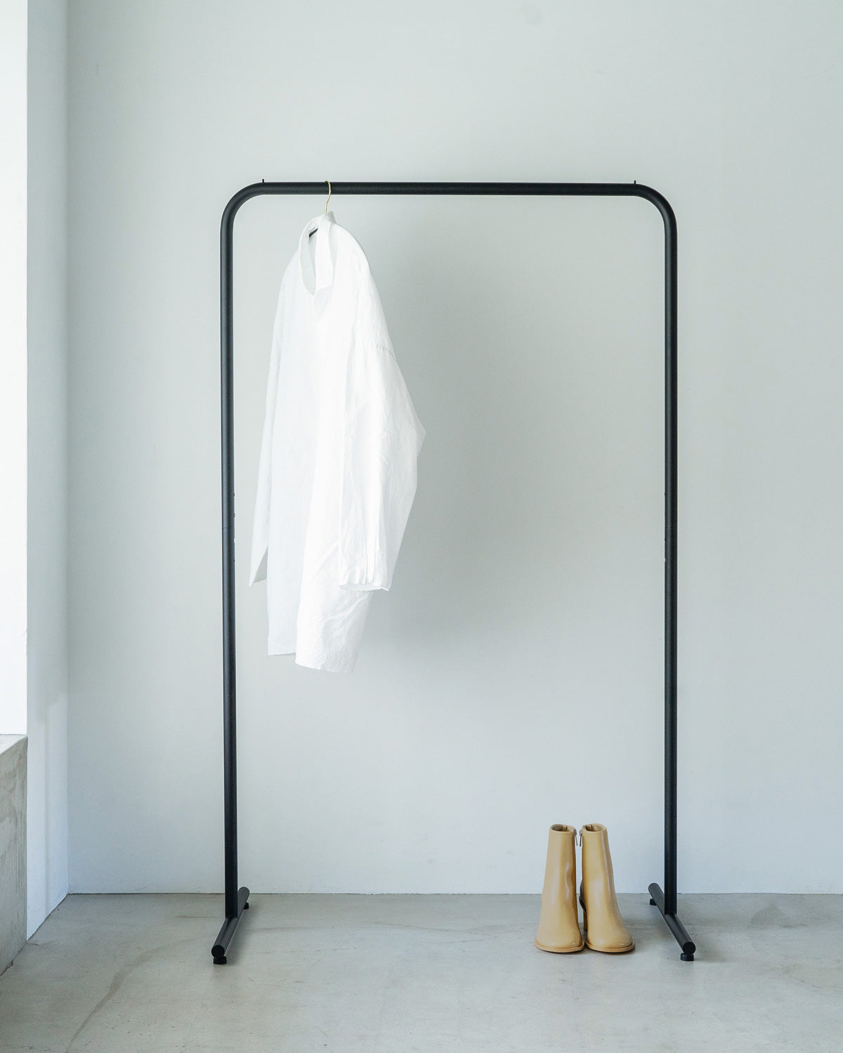 マットブラックのスチールパイプがすっきりと美しく佇み、空間に自然と溶け込む、HANGER RACK。