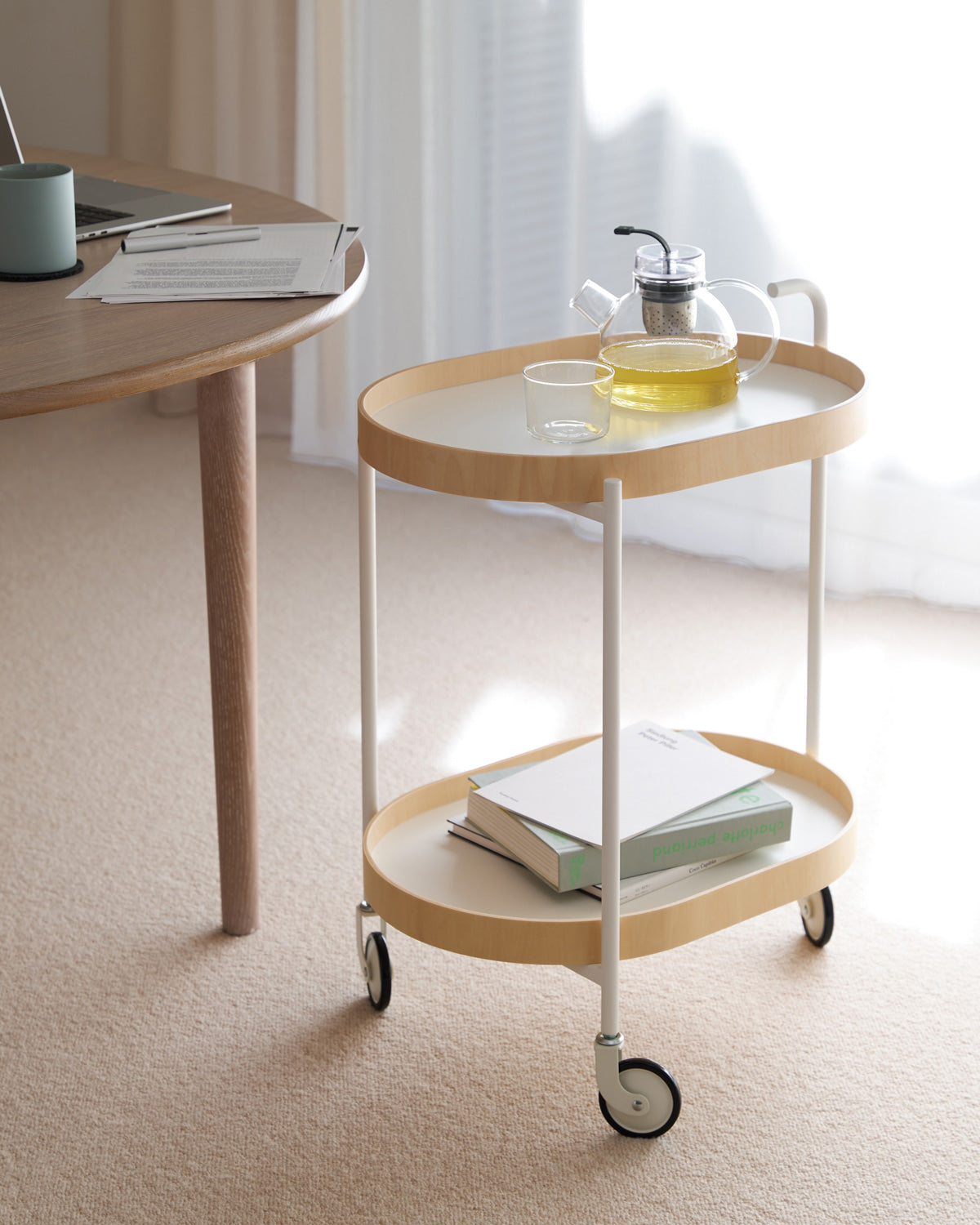 シンプルなデザインながら、優美な全体の存在感がインテリアの中で自然と引き立てられるTROLLEY。